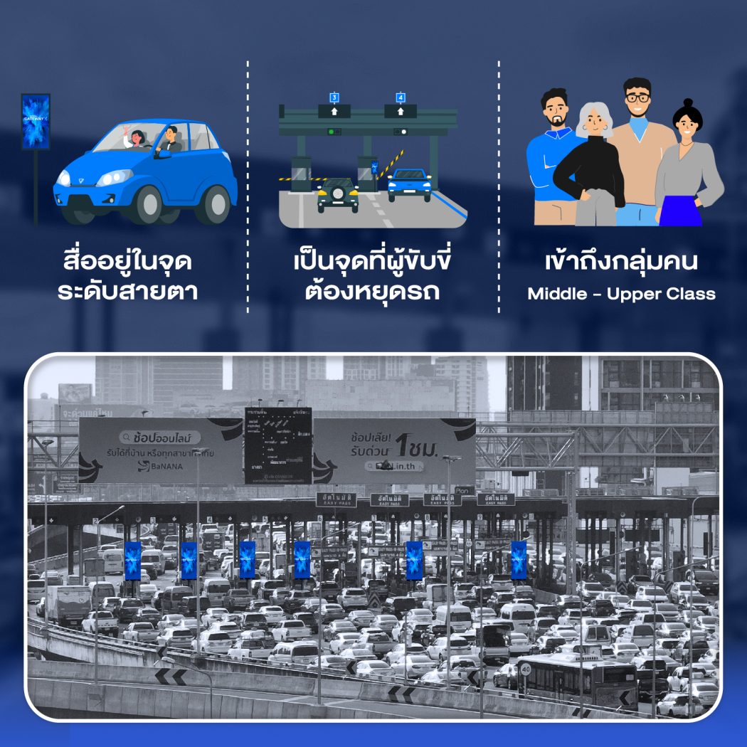 สื่อนี้ติดตั้งบนทางด่วน 3 เส้นทางหลัก จำนวนมากกว่า 20 ด่าน ครอบคลุมพื้นที่สำคัญในกรุงเทพฯ และปริมณฑล โดยข้อมูลจาก BEM ยังคาดการณ์ปริมาณรถที่ใช้ทางด่วนในปีนี้จะเพิ่มขึ้น 2-3% จากปีก่อน