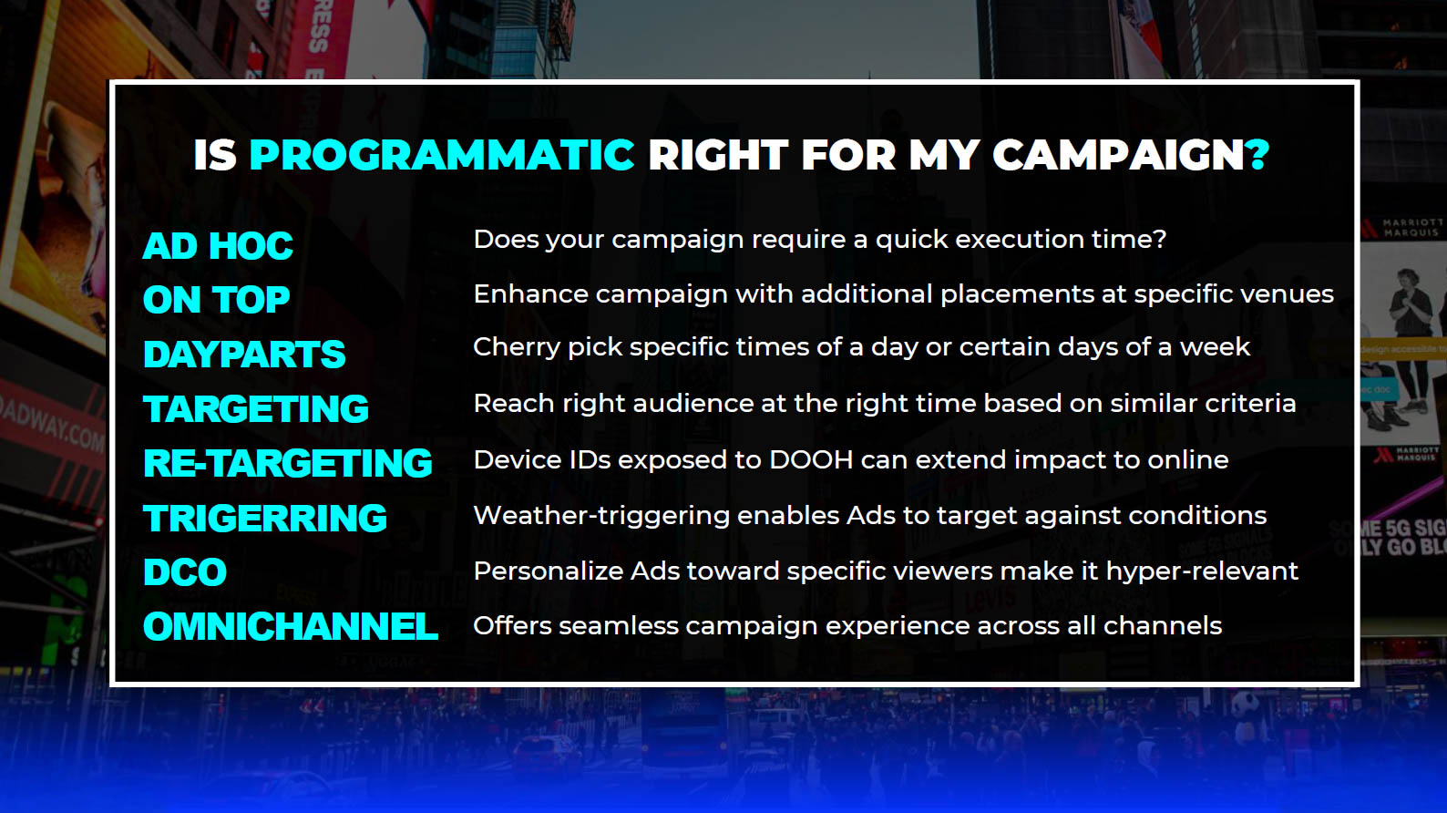 Programmatic Digital Out-of-Home (PDOOH) solutions bring unmatched flexibility and precision to outdoor advertising. By integrating data-driven technology, advertisers can target audiences based on location, time, behavior, and demographics.