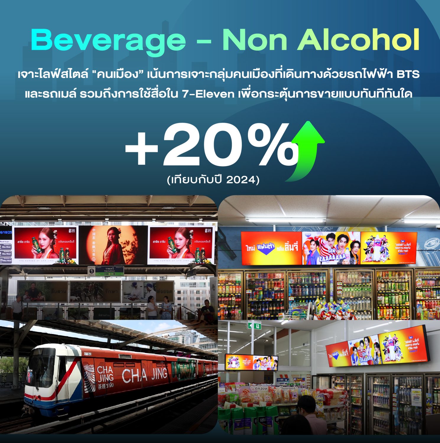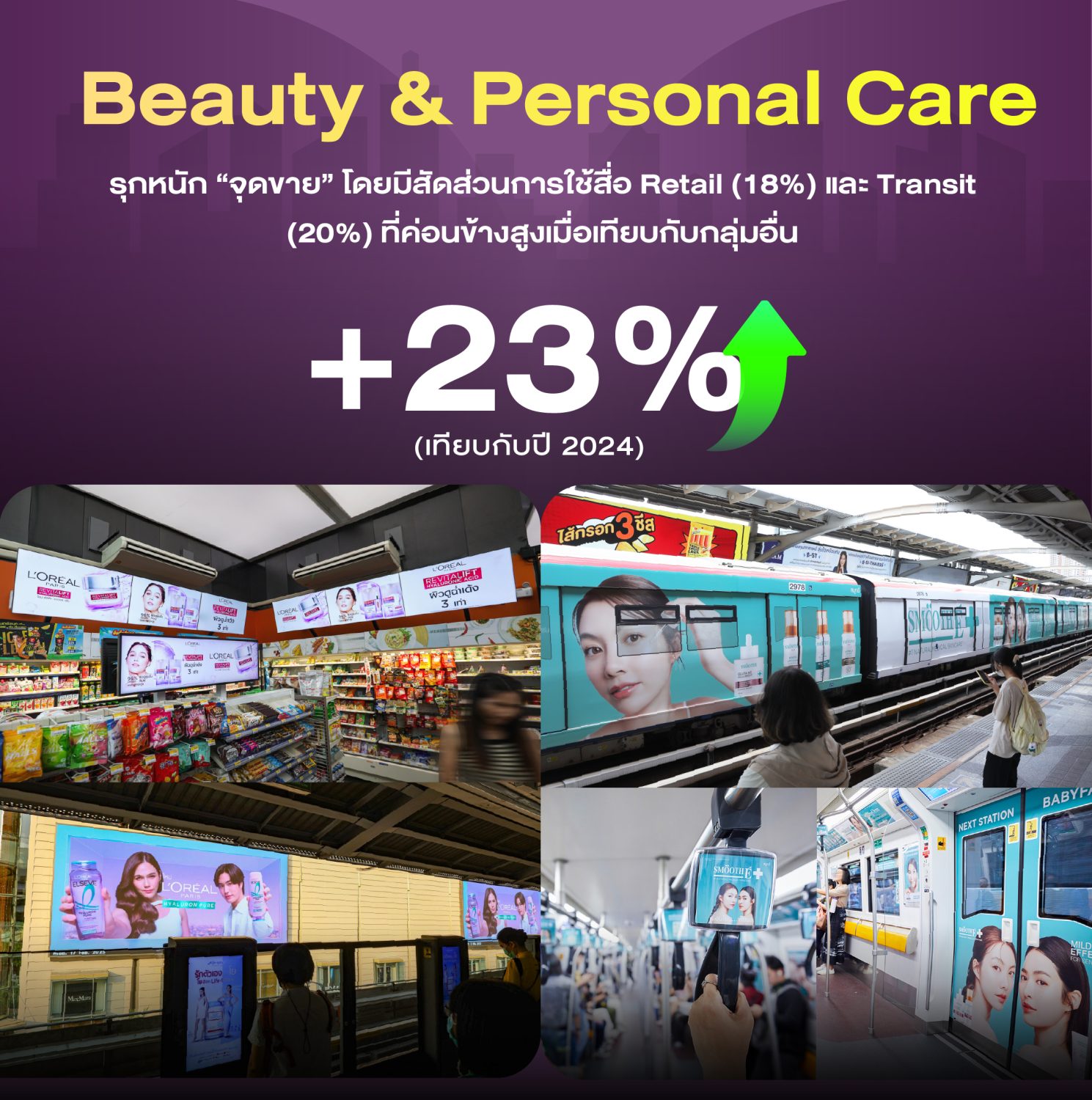🌟กลยุทธ์: ใช้ควบคู่กับ Transit Media (สื่อบนสถานีและรถไฟฟ้า BTS) ในสัดส่วนที่มาก เพื่อเสริมการรับรู้จากโลกออนไลน์และเข้าถึงผู้บริโภคในช่วงเวลาการเดินทาง
