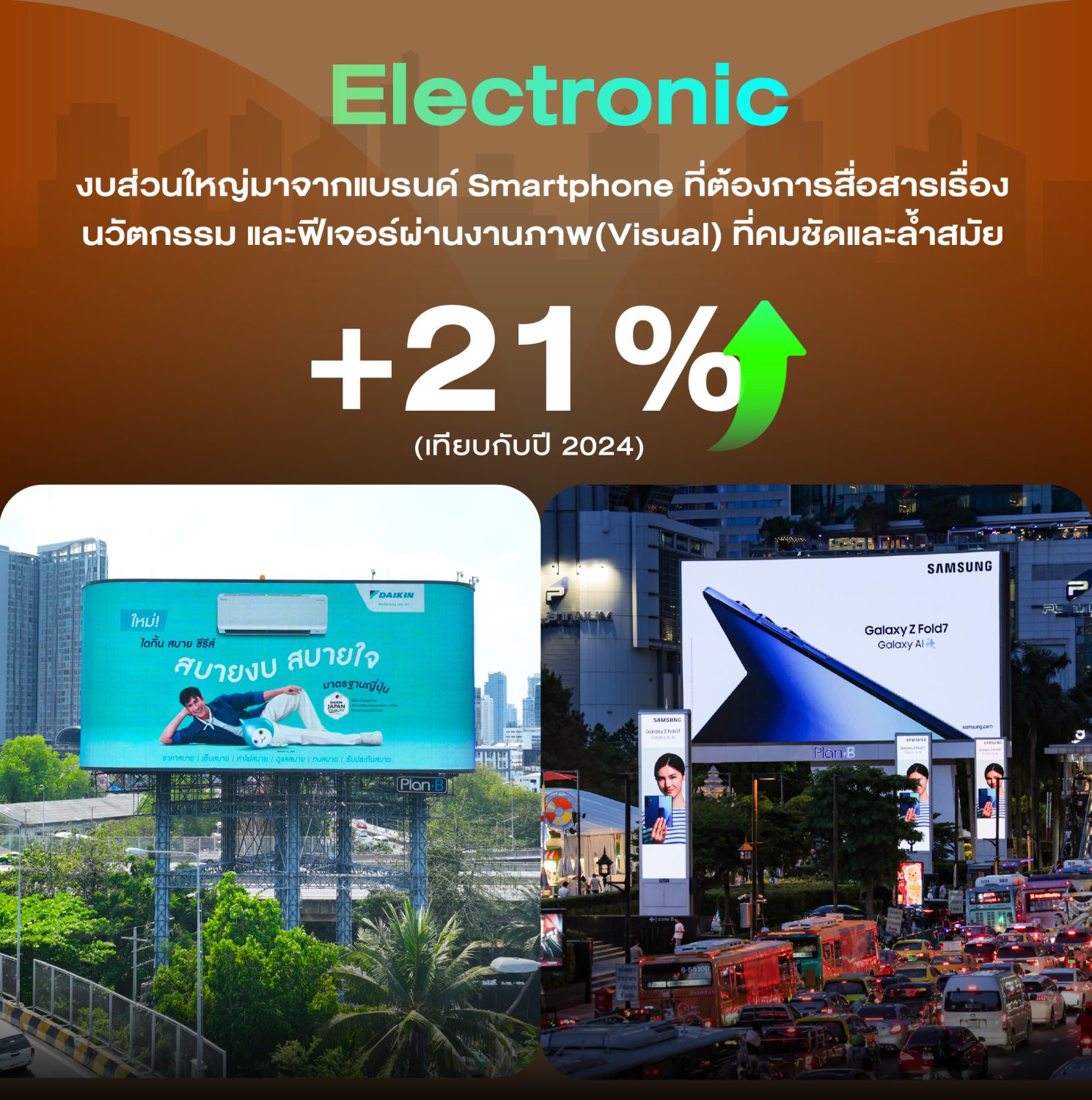 4. Electronic (อิเล็กทรอนิกส์) 📱📡 กลุ่มนี้ใช้ Digital OOH เป็นสื่อหลัก อย่างชัดเจน โดยงบส่วนใหญ่มาจากแบรนด์ Smartphone