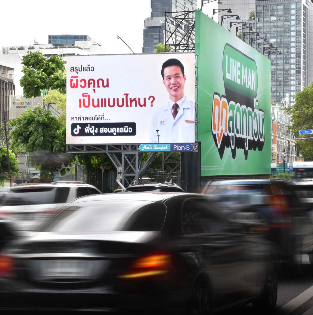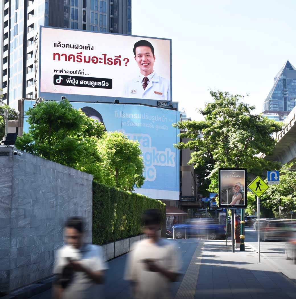 💡 แคมเปญนี้ออกแบบให้ Online และ Offline เชื่อมกันแบบ O2O อย่างแนบเนียน โดยใช้สื่อ PlanB TV กว่า 40 จอทั่วกรุงเทพฯ เป็นพื้นที่ปล่อย “Fact กระตุกใจ” เช่น “รู้หรือไม่ คนผิวแห้งไม่ต้องทาครีมหนาก็ได้”