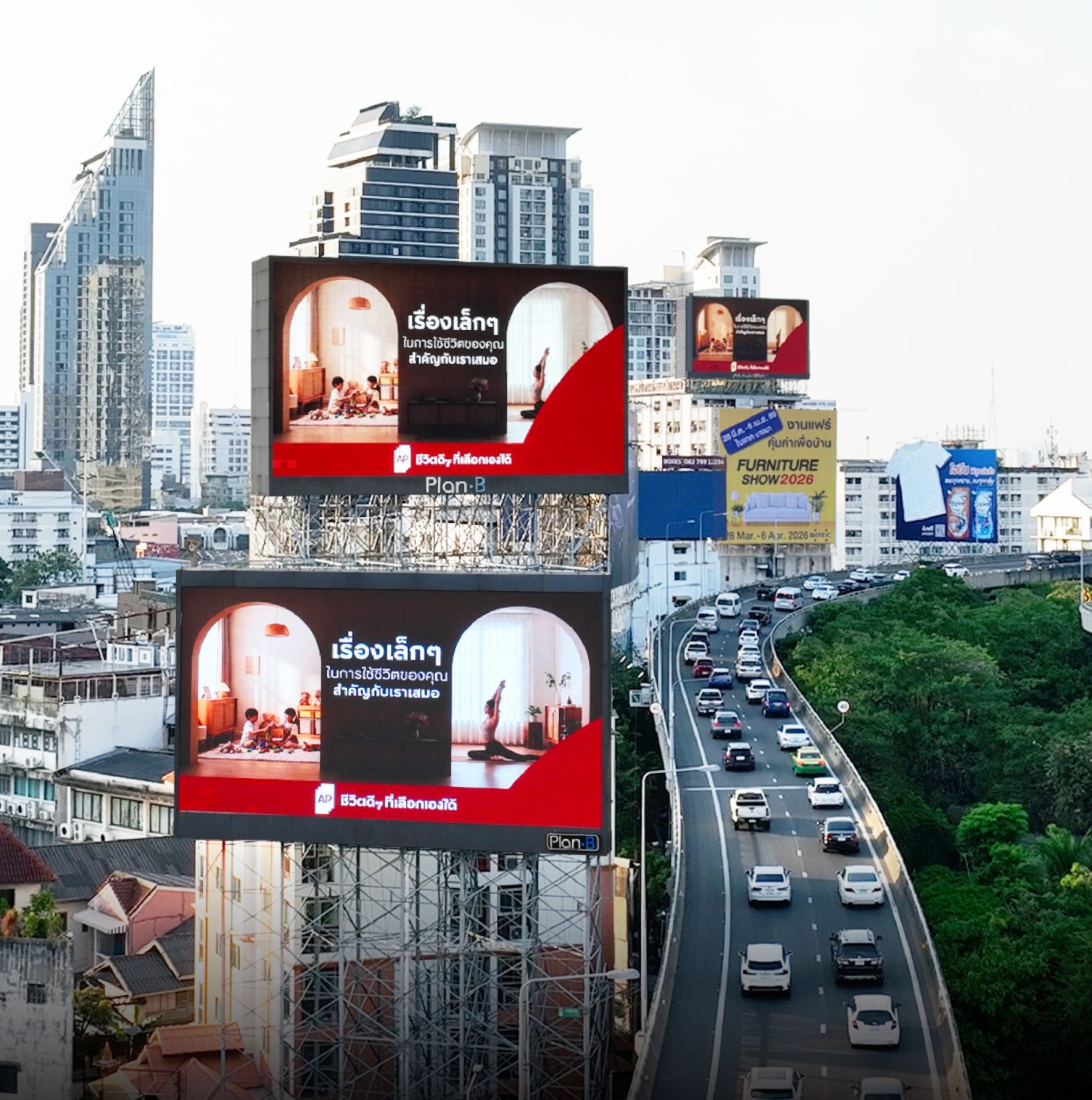 AP ดึงข้อความที่อบอุ่นมาวางบนเครือข่ายจอ **Signature Max** จอ Iconic ระดับพรีเมียมบนถนนสายหลัก ทางด่วน และจุดสำคัญทั่วกรุงเทพฯ การนำเรื่องเล็กๆ มาอยู่บนจอระดับ Mega Scale ช่วยสร้าง Visual Impact ที่ทรงพลัง และตอกย้ำว่าแบรนด์ให้ความสำคัญกับรายละเอียดเล็กๆ ของผู้บริโภคอย่างแท้จริง