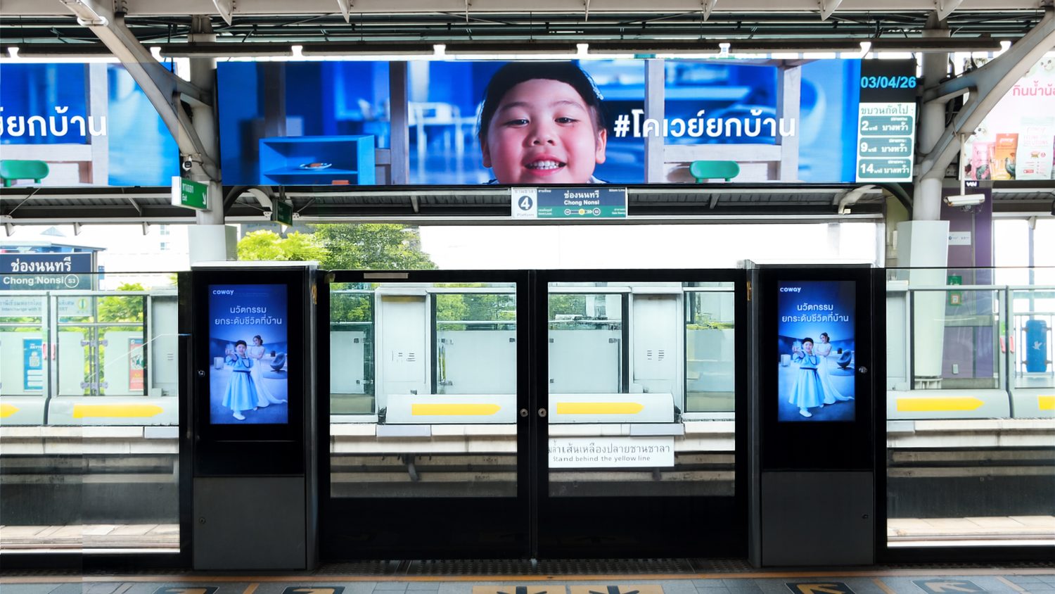 เพื่อให้การสื่อสารเข้าถึงกลุ่มครอบครัวรุ่นใหม่ Coway ได้เลือกใช้กลยุทธ์สื่อนอกบ้าน เพื่อสร้างการรับรู้และปรับภาพลักษณ์แบรนด์ให้ทันสมัย ครอบคลุมในหลายจุดหมาย: