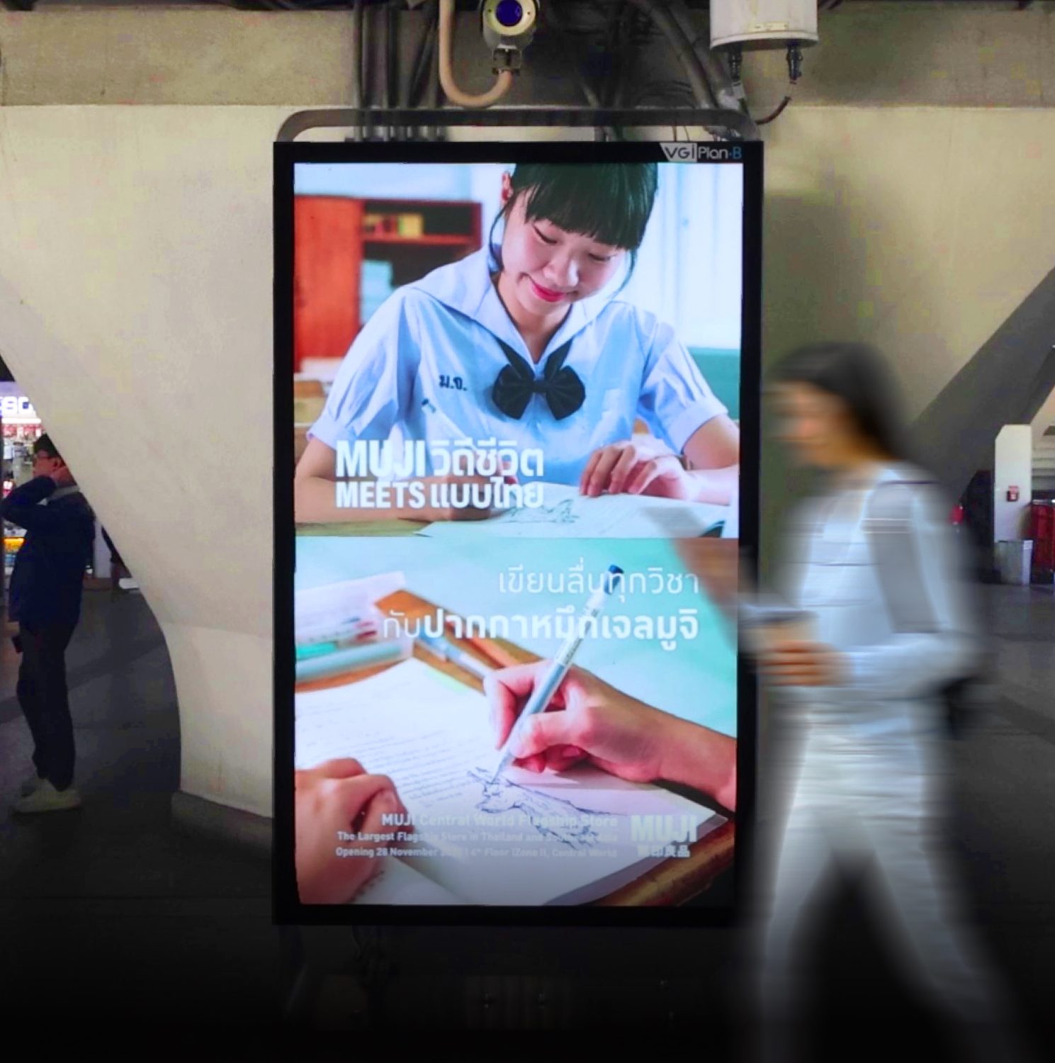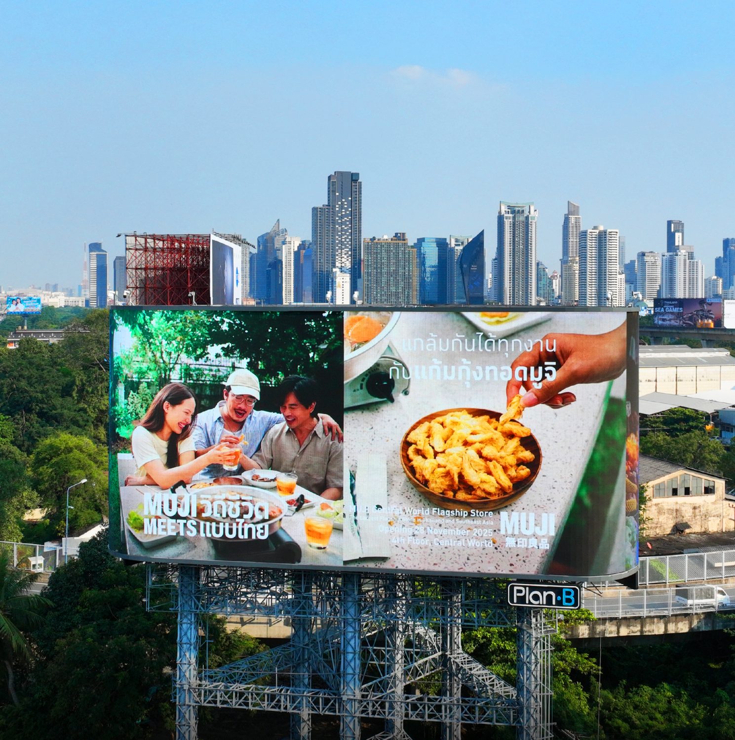 The Base: สื่อพรีเมียมเป็นเอกลักษณ์ด้วยจอ 3 ด้านประกบกัน เห็นทุกมุมบนทางด่วน และช่วยยกระดับภาพลักษณ์ MUJI ให้ดูเรียบ เท่ และพรีเมียมมากยิ่งขึ้น![]()