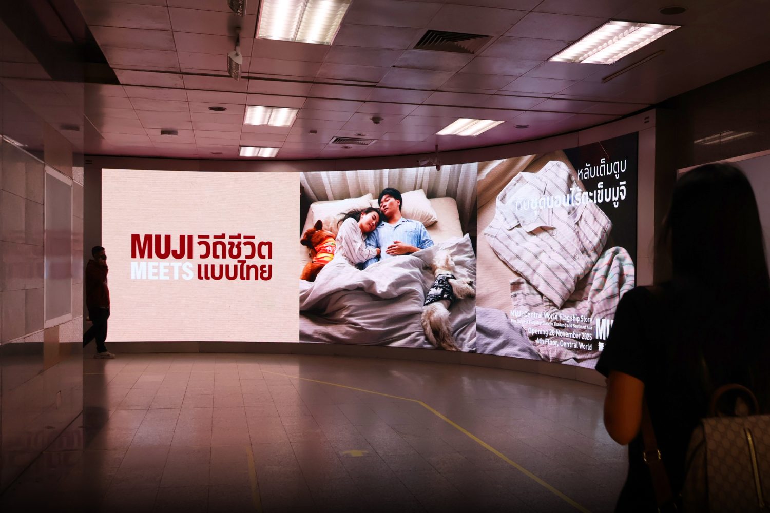 The Panoramix @CentralWorld: จอ Interactive ที่ใหญ่ที่สุด ทำหน้าที่เป็น “ป้ายต้อนรับอย่างเป็นทางการ” ของ MUJI Flagship ใหม่ ให้ผู้คนบน Skywalk และลานหน้า CTW เห็นอย่างชัดเจน