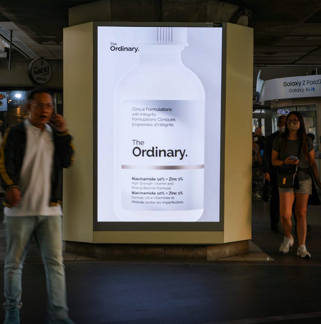 The Ordinary แบรนด์สกินแคร์สัญชาติแคนาดาที่ครองใจคนรักผิวชาวไทย ด้วยปรัชญาที่เน้นขับเคลื่อนด้วยวิทยาศาสตร์และความโปร่งใส โปรโมทจัดเต็มผ่านสื่อนอกบ้าน (OOH) เพื่อส่งต่อโซลูชันแห่งการดูแลผิว