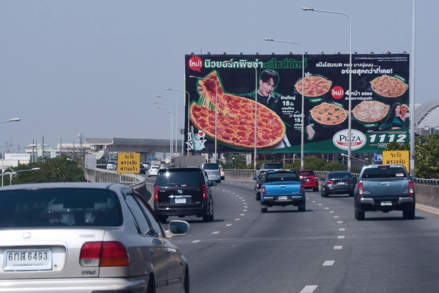 • สื่อ Unipole ป้ายบิลบอร์ดขนาดใหญ่กว่า 500 ตรม. บริเวณทางด่วนศรีรัช (ประชาชื่นขาออก) จึงตอบโจทย์แบรนด์ที่ต้องการแสดงให้เห็นถึงจุดเด่นในเรื่องความใหญ่ของพิซซ่าไซต์ XXLพร้อมด้วยการใช้ภาพพิซซ่าที่ชวนให้รู้สึกอยากไปสัมผัสความอร่อย