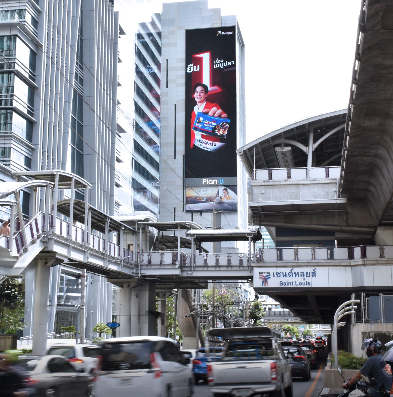 Plan B TV (สร้างความคุ้นเคย): หลังจากสร้าง Impact แรกแล้ว เครือข่ายจอ Plan B TV เครือข่ายจอดิจิทัลที่ใหญ่ที่สุด ตั้งอยู่จุดสำคัญทั่วกทม. พลังของ “ความถี่” (Frequency) ที่ช่วยตอกย้ำสารซ้ำทุกวัน ทำให้แบรนด์ค่อย ๆ ถูกจดจำและคุ้นเคยมากขึ้น
