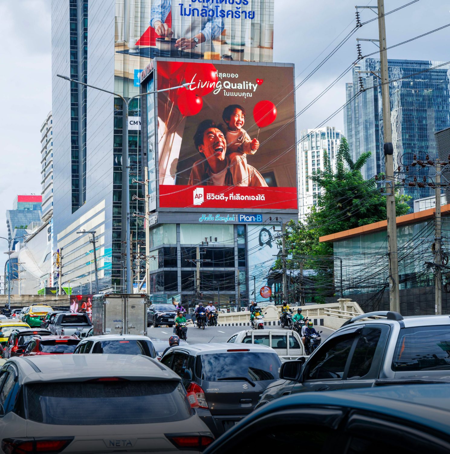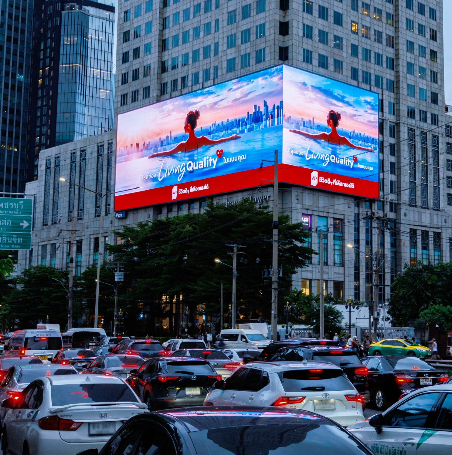 แทนที่จะเน้นการขายแบบ Hard Sell ข้อความของแคมเปญถูกปล่อยซ้ำ ๆ บนเส้นทางที่คนพบเจอทุกวัน จนความหมายของ “Living Quality” ค่อย ๆ ซึมซับ และกลายเป็นส่วนหนึ่งของการตีความชีวิตในแบบของแต่ละคน