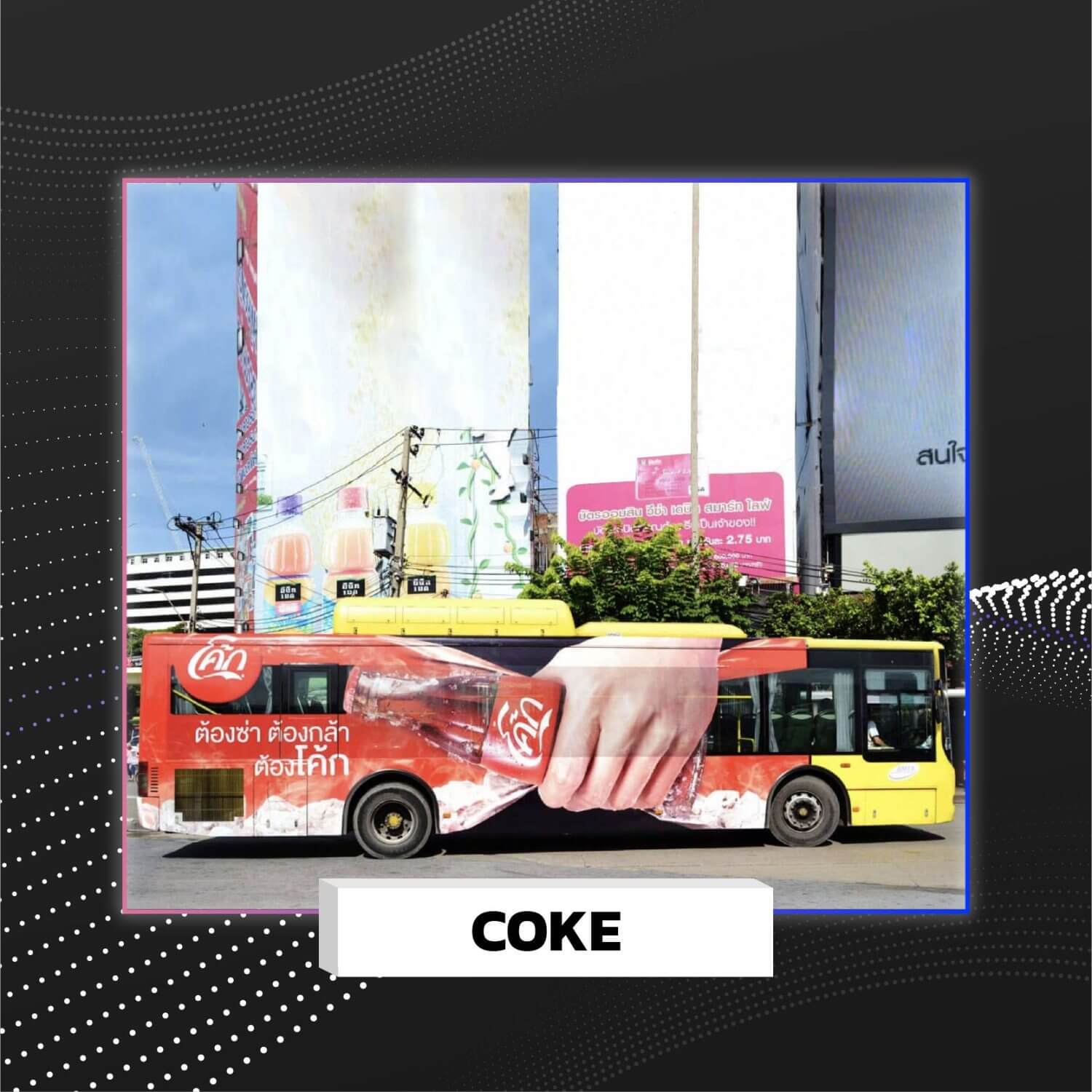 • ตัวอย่างสื่อ Classic และ Transit ที่สามารถดึงดูดความสนใจของผู้ชมด้วยเทคนิคการออกแบบในรูปแบบ 3 มิติ โดยเน้นแสงเงา และมุมมองภาพ ทำให้ภาพโฆษณาและสินค้าโดดเด่นขึ้นมาจากพื้นที่นั้นๆ