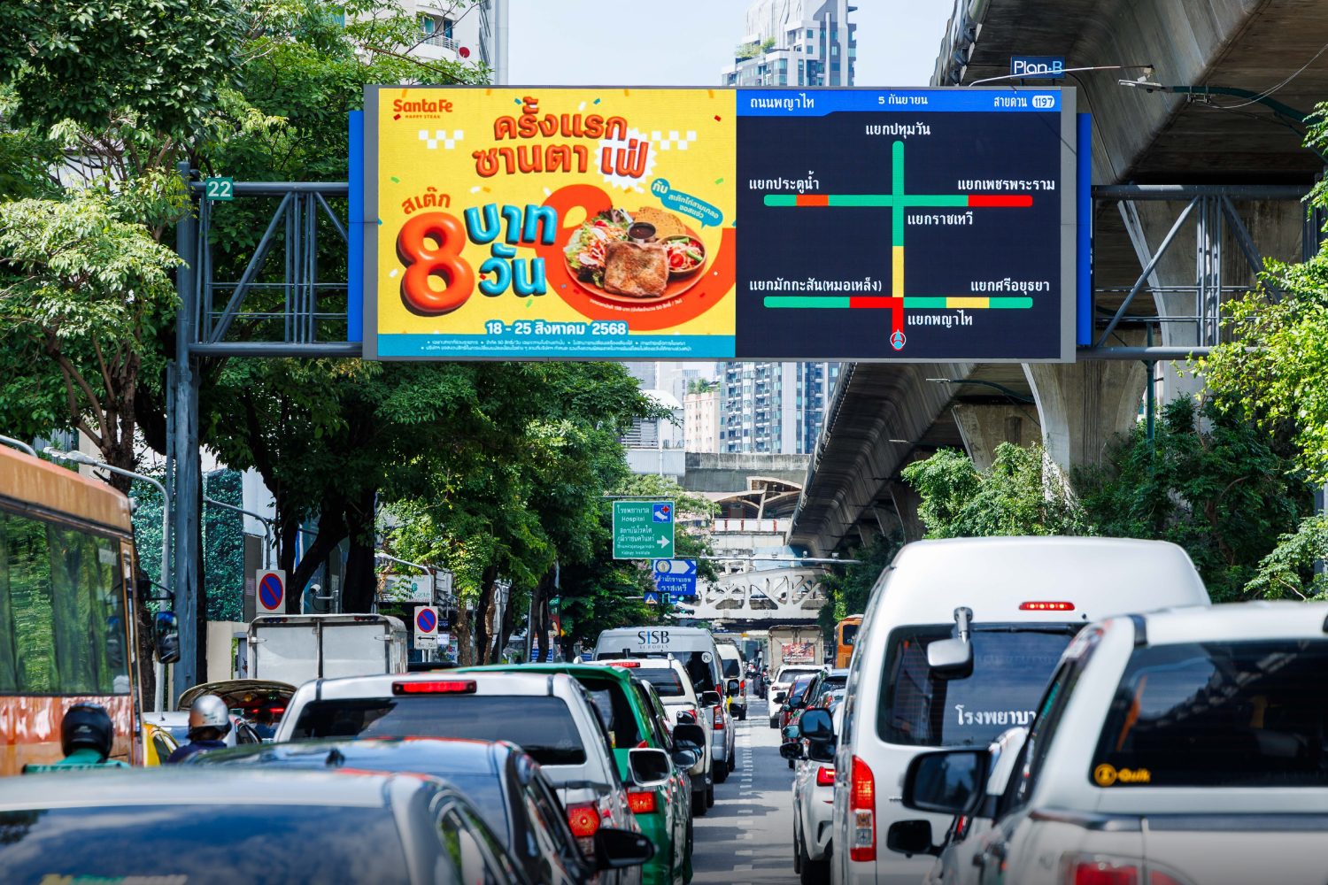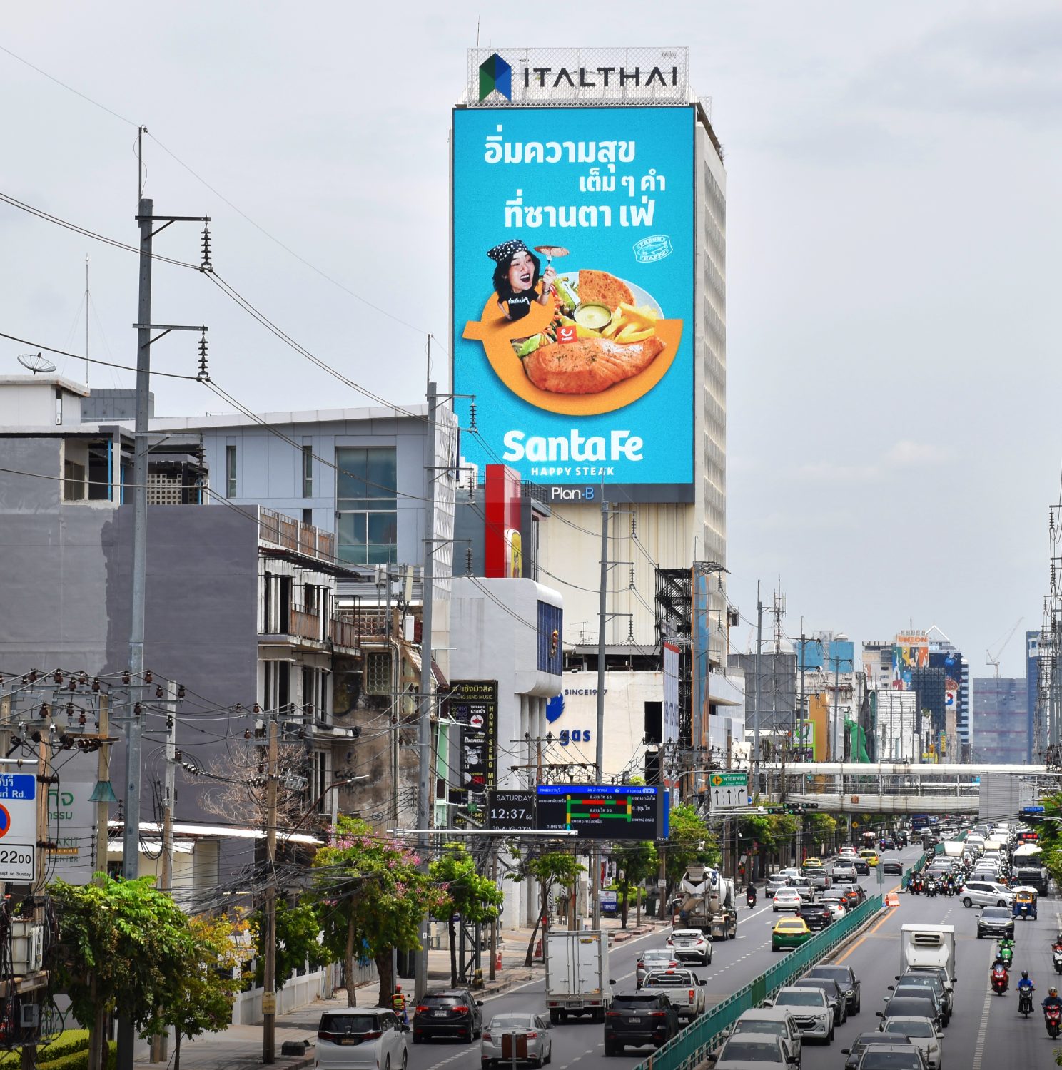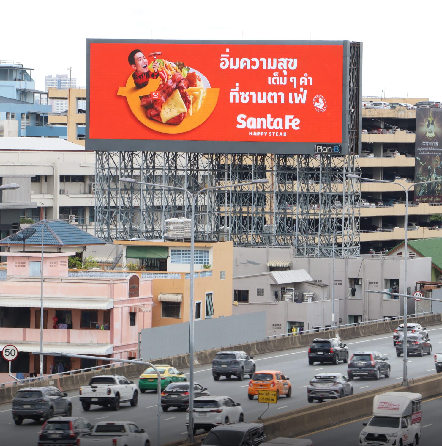 แบรนด์ใช้ สื่อนอกบ้าน (OOH) เป็นเครื่องมือหลักสื่อสารภาพลักษณ์ใหม่ ผ่านจอดิจิทัลทั่วกรุงเทพฯ ที่สร้างการมองเห็นซ้ำทั้งวัน (High Frequency) 👀 เกิดการจดจำแบรนด์ และย้ำ Positioning ว่า Santa Fe คือแบรนด์ที่ สนุก สดใหม่ และกล้าทำอะไรต่างจากเดิม ✨