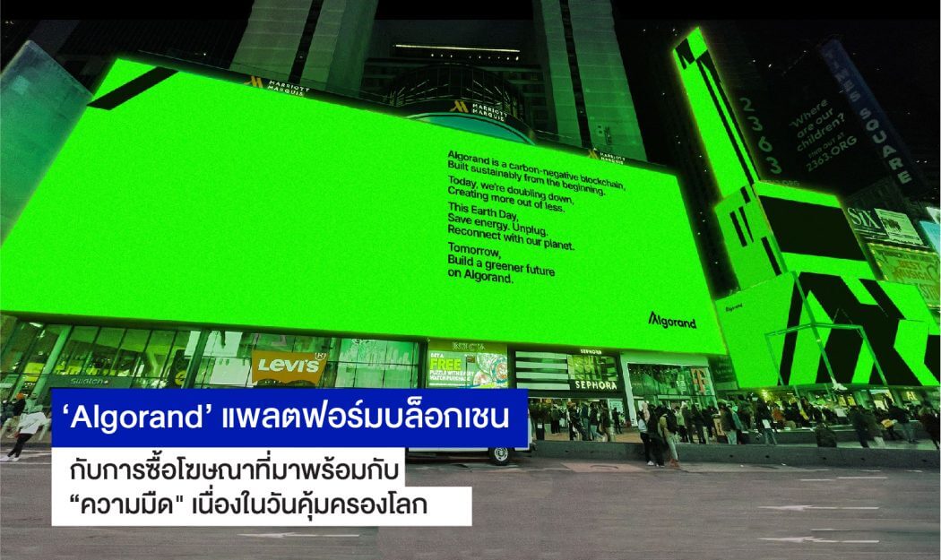 ‘ Algorand ’ แพลตฟอร์มบล็อกเชนกับการซื้อโฆษณาที่มาพร้อมกับ “ความมืด” เนื่องในวันคุ้มครองโลก